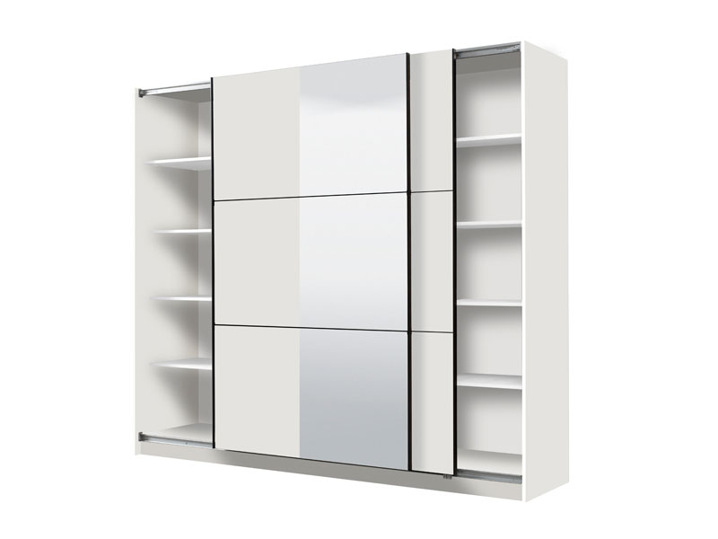 Garderober SIERRA 240 OG u opak bijelom dekoru predstavlja model garderobera savremenog dizajna i velike praktične upotrebne vrijednosti. Unutrašnjost se sastoji od segmenta sa policama u lijevom i desnom dijelu, kao i segmenta sa garderobnom šipkom u središnjem dijelu. Poseban benefit ovog modela je klizni mehanizam koji doprinosi ekonomičnoj organizaciji raspoloživog prostora, kao i ogledalo na polovini lijevog kliznog elementa koje ima i funkcionalnu i estetsku vrijednost. Posjeduje mogućnost ugradnje usporivača kod kliznog mehanizma koji dodatno doprinose sigurnosti i funkcionalnosti.