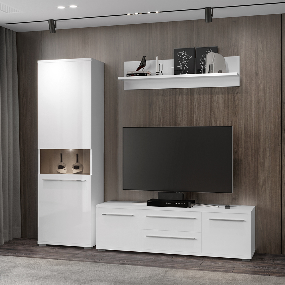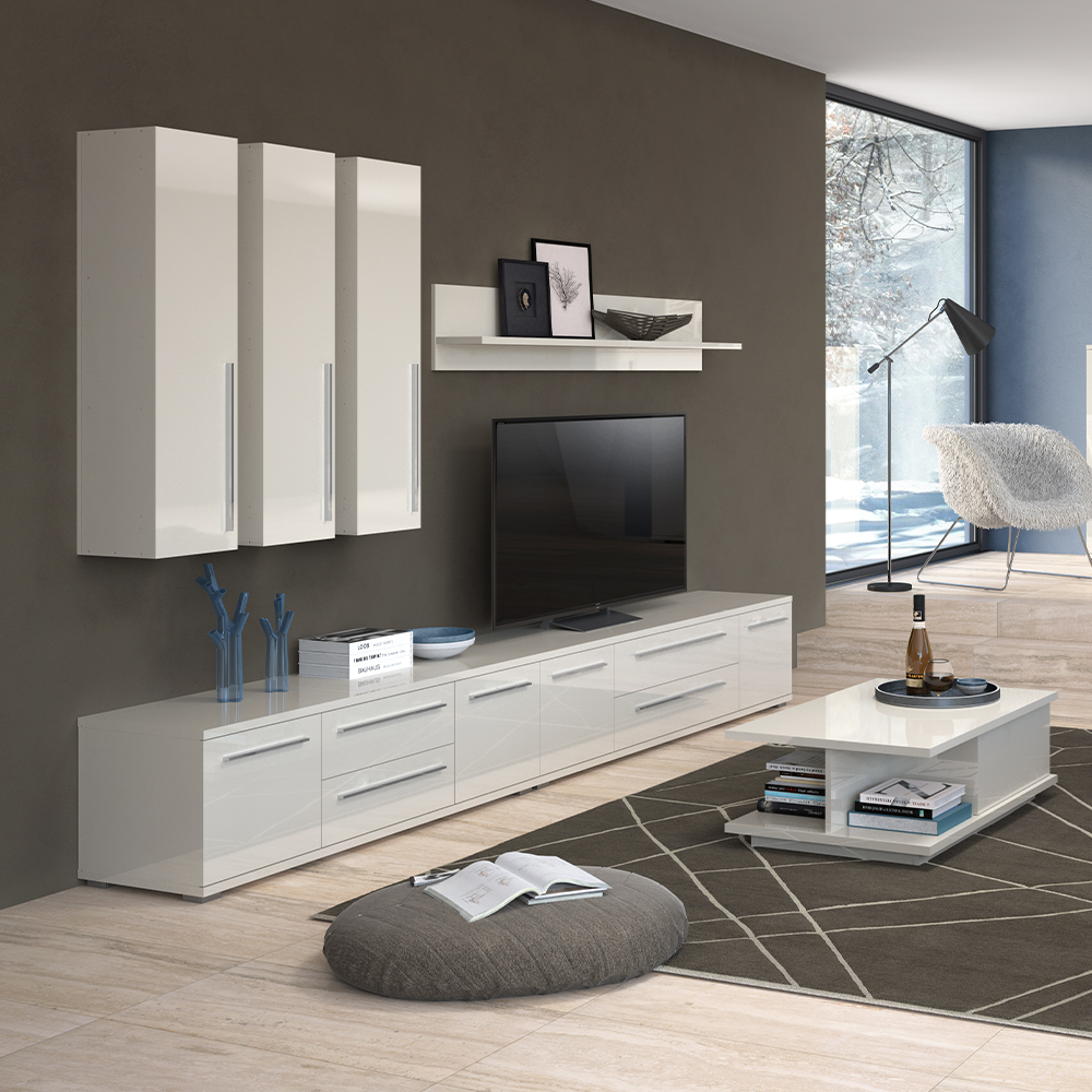 Tv sto za dnevnu sobu iz kolekcije nameštaja PIANO sa dva krila (45cm) i dve fioke (60cm), kompletno lakiran najnovijom tehnologijom UV lakiranja frontovi, bočne strane i plafon elementa lakirani su UV lakom u visokom sjaju, u toploj bež ili kristalno beloj boji unutrašnji delovi korpusa su u beloj boji soft-close šarke i klizači omogućuju tiho zatvaranje krila i fioka, što pruža dodatnu ugodnost pri stalnoj upotrebi Moderan, eleganan i pre svega funkcionalan tv sto za dnevnu sobu.