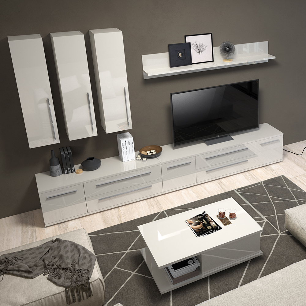 Tv sto za dnevnu sobu iz kolekcije nameštaja PIANO sa dva krila (2x45cm) i dve fioke (90cm), kompletno lakiran najnovijom tehnologijom UV lakiranja frontovi, bočne strane i plafon elementa lakirani su UV lakom u visokom sjaju, u toploj bež ili kristalno beloj boji unutrašnji delovi korpusa su u beloj boji soft-close šarke i klizači omogućuju tiho zatvaranje krila i fioka, što pruža dodatnu ugodnost pri stalnoj upotrebi Moderan, eleganan i pre svega funkcionalan tv sto za dnevnu sobu.